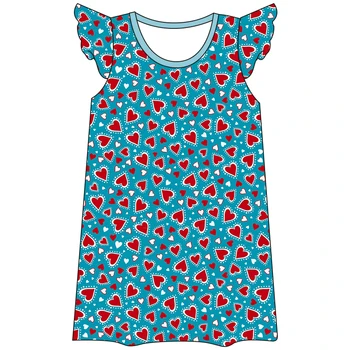 Custom Printed Summer Princess Dress for Toddler Girls 95% Bamboo 5% Spandex Eco-Friendly Flutter Sleeve Nighty Dress Animal