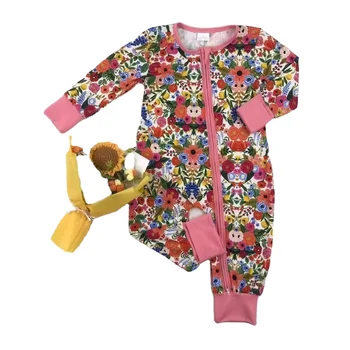 Custom Print Bamboo Fabric Newborn Baby Infant Rompers Clothes Onesie Zipper Baby Bamboo Pajamas Viscose Toddler Sleeper Clothes